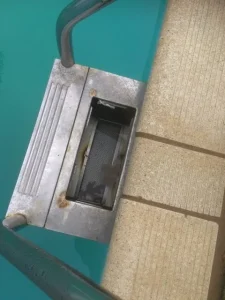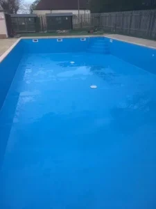 A complete rebuild and re shaping from the floor up at a property near Cannington. The existing pool walls were being pushed over by tree roots. The floor level was raised and the width extended to provide a large but safe pool for children and adults alike. Twin ‘wedding cake’ style steps were added one at each end together with all new pool flow fittings and pipework. The plantroom was re fitted with large diameter filtration and circulation pump.