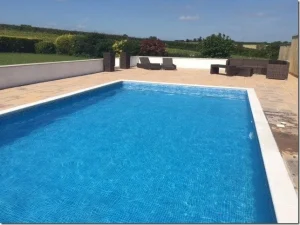 Mudford Yeovil was a full rebuild including pool fittings, pipework, liner etc and creation of a very large patio area and retaining wall. Limited access site so everything was brought in via an adjacent field and craned in. Thanks to Chris Salter and Son for all the mechanical solutions for this project that seemed impossible at the start!