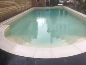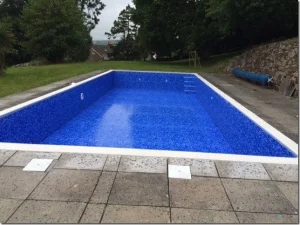 Staplegrove was a full refurbishment. Replacing all pool flow fittings including pipework back to plantroom, replacement pump and filter, replacement liner and new summer cover and reel system. We also laid replacement coping stones and relaid the pool surround.