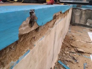 Repairs to damaged pool walls caused by tree roots and a replacement liner in Persia blue at a pool near South Petherton.